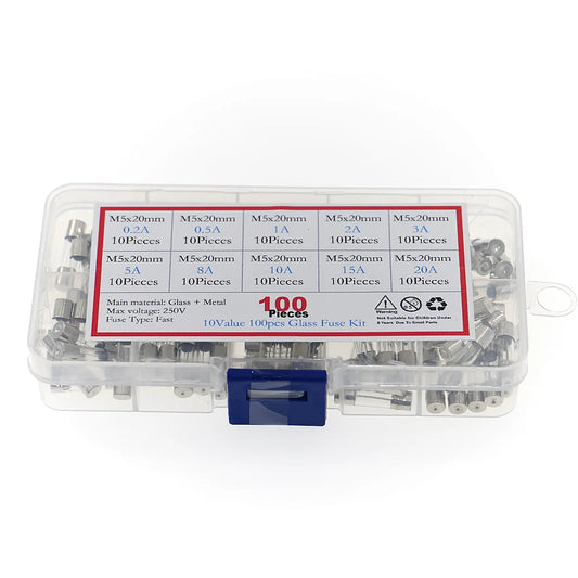 100Pcs/Box 5x20mm Fast-blow Glass Fuse Assorted Kit 0.2A 0.5A 1A 2A 3A 5A 8A 10A 15A 20A Amp Fuses Electrical Fuse Tube Mix Set