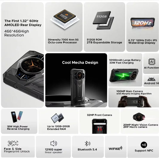 World Premiere Ulefone Armor 29 Ultra 5G AI Rugged Phone Dual Screen Dimensity 9300+21200mAh 120Hz 1TB ROM 64MP, NFC, Android 15