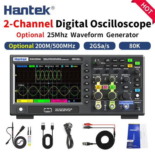 【Hantek Official Genuine】Digital oscilloscope DSO2C20/2C35/2C50/2D20/2D35/2D205 200/350/500MHz 2Gsa/s 2-Ch desktop oscilloscope